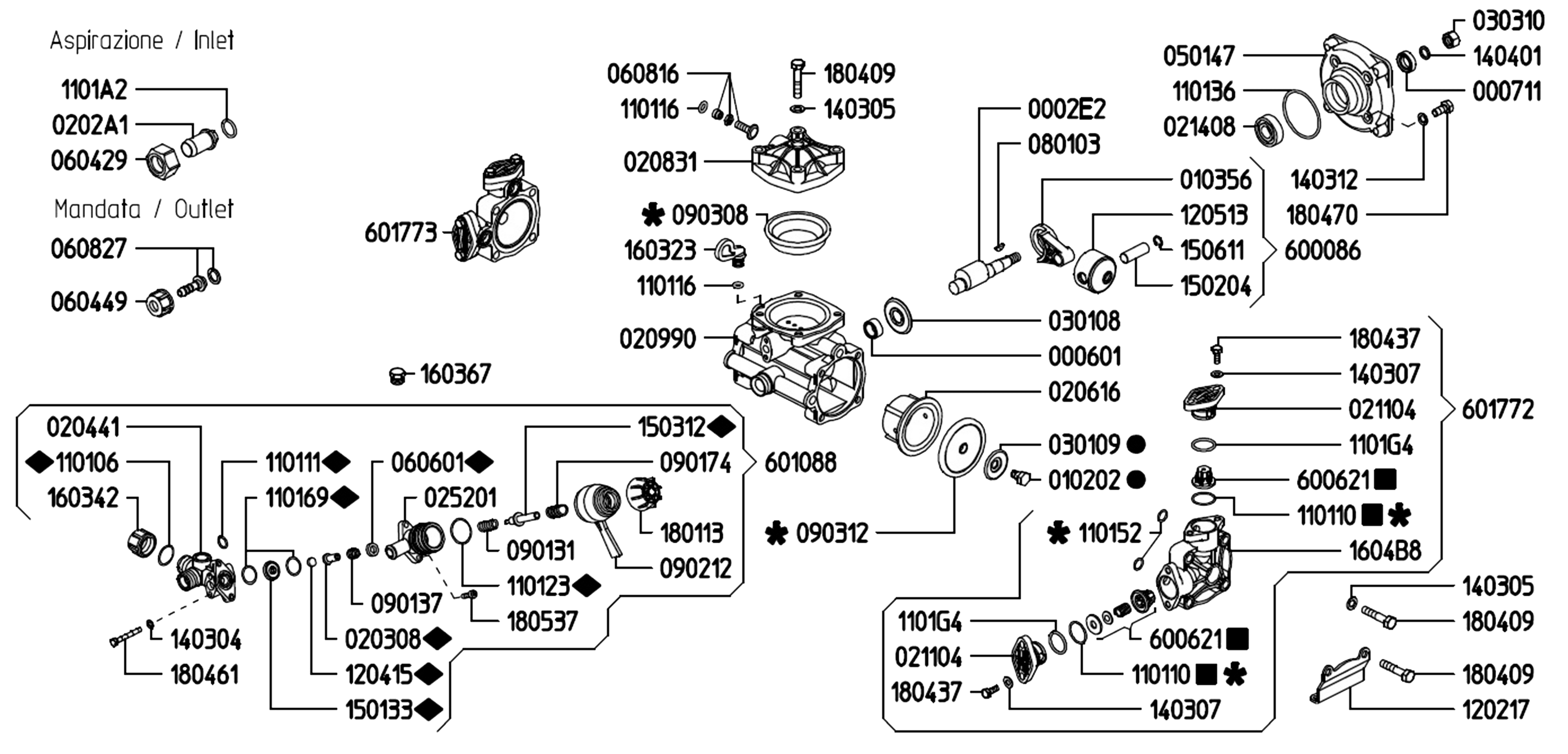 Despiece y repuestos para bomba a diafragma UDOR modelo IOTA 20, utilice la imagen como referencia para seleccionar los repuestos que necesite, y agregar a carro las piezas que necesita.