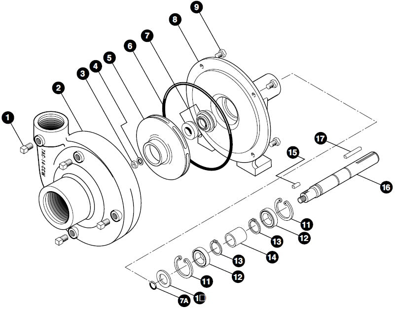 Repuestos para la bomba centrifuga marca ACE Pumps modelo FMC-200 rotación CCW.
