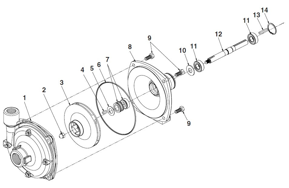 Repuestos para bomba HYPRO de eje libre modelo 92022, con sentido de rotación Horaria si se observa desde la boca de aspiración y si observa desde el eje seria rotación anti horario.